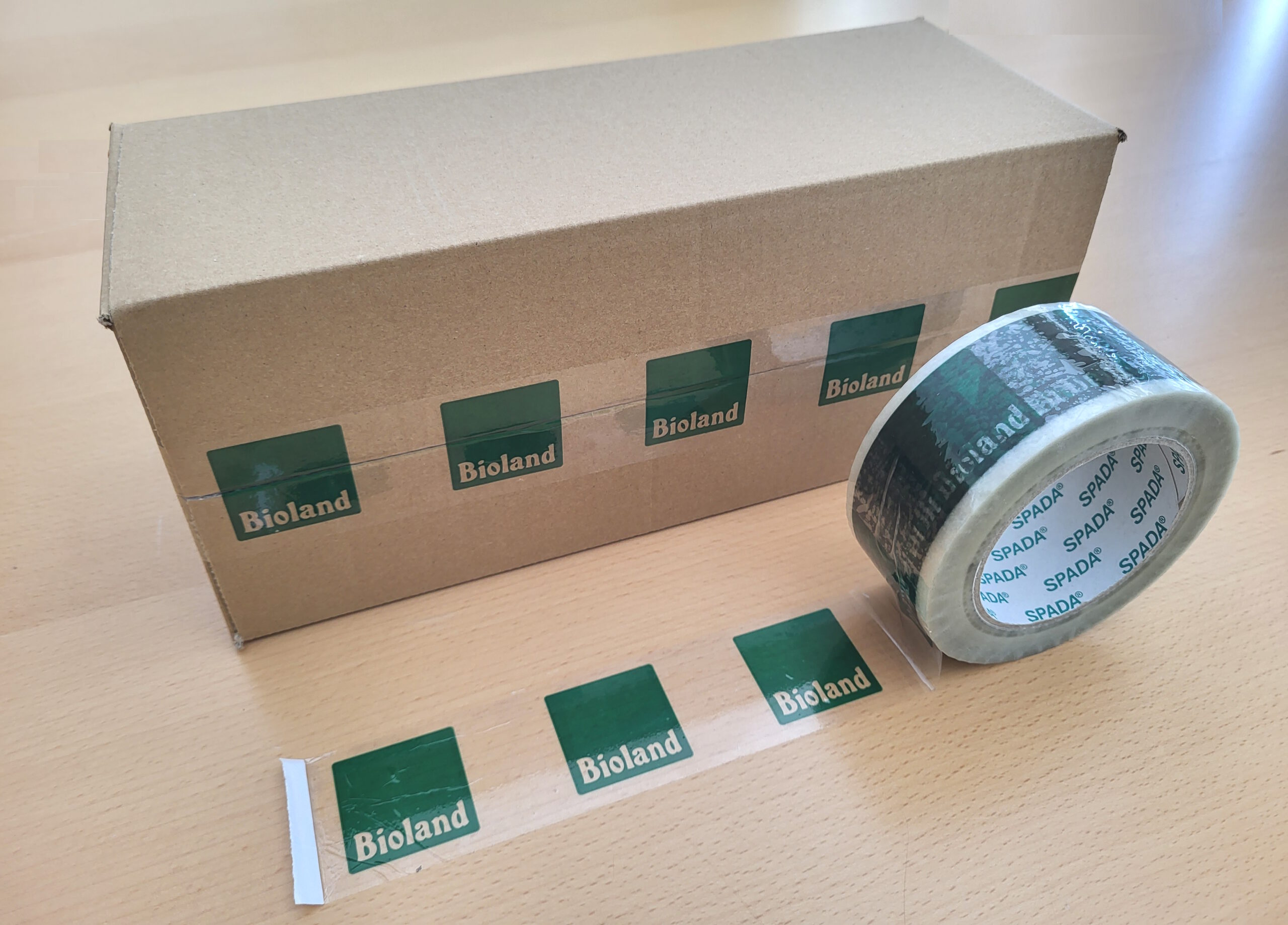 Das nachhaltige Klebeband aus 85 % recycelten PET-Flaschen im Bioland Design.